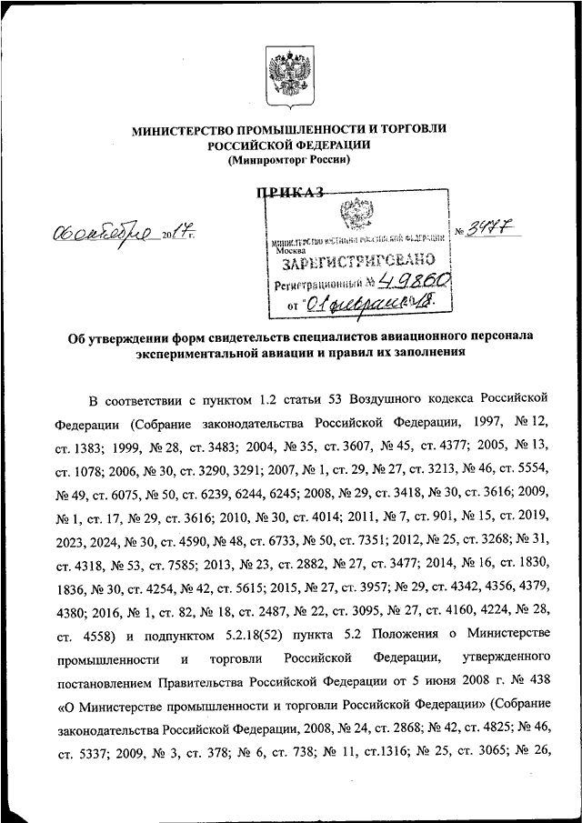 ПРИКАЗ Минпромторга РФ от 06.10.2017 N 3477