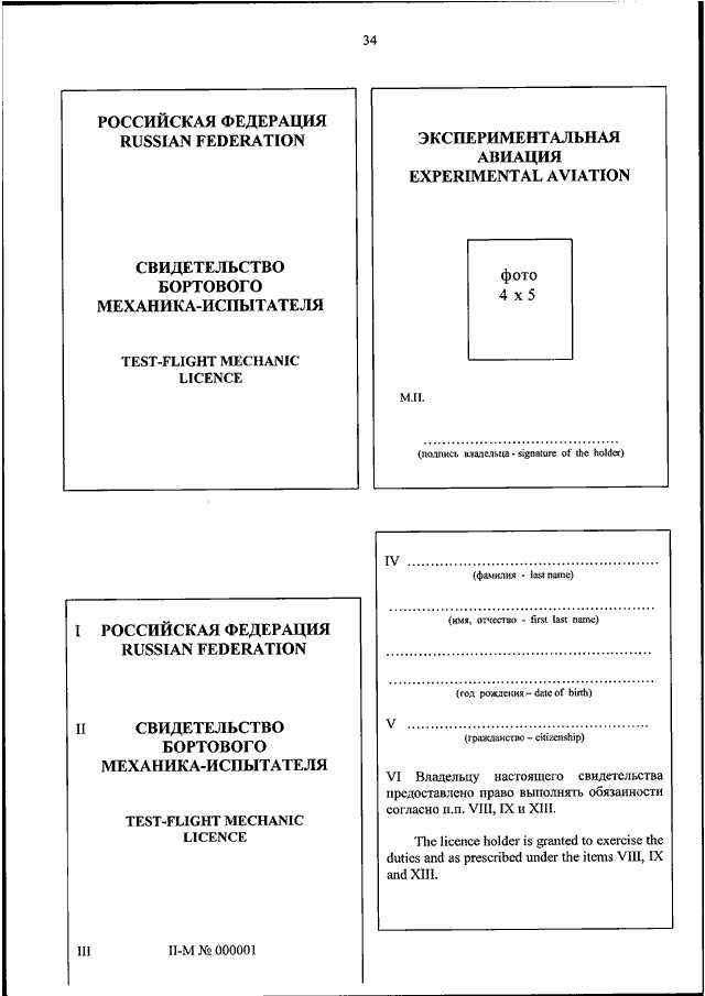 "ОБ УТВЕРЖДЕНИИ ФОРМ СВИДЕТЕЛЬСТВ СПЕЦИАЛИСТОВ АВИАЦИОННОГО ПЕРСОНАЛА ЭКСПЕРИМЕНТАЛЬНОЙ АВИАЦИИ И ПРАВИЛ ИХ ЗАПОЛНЕНИЯ"