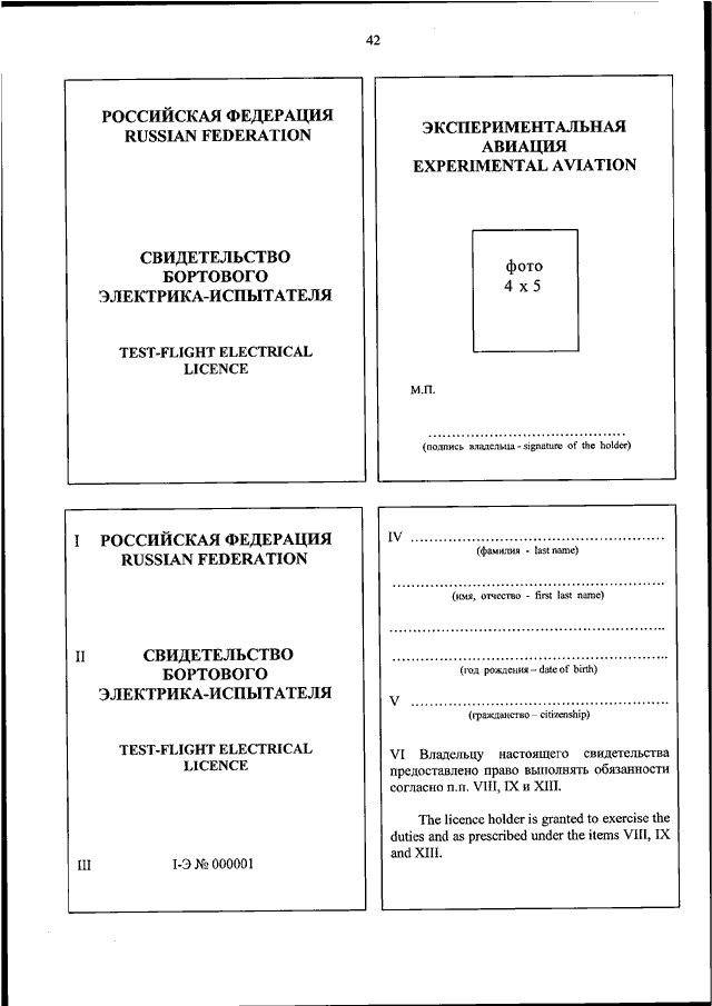 "ОБ УТВЕРЖДЕНИИ ФОРМ СВИДЕТЕЛЬСТВ СПЕЦИАЛИСТОВ АВИАЦИОННОГО ПЕРСОНАЛА ЭКСПЕРИМЕНТАЛЬНОЙ АВИАЦИИ И ПРАВИЛ ИХ ЗАПОЛНЕНИЯ"