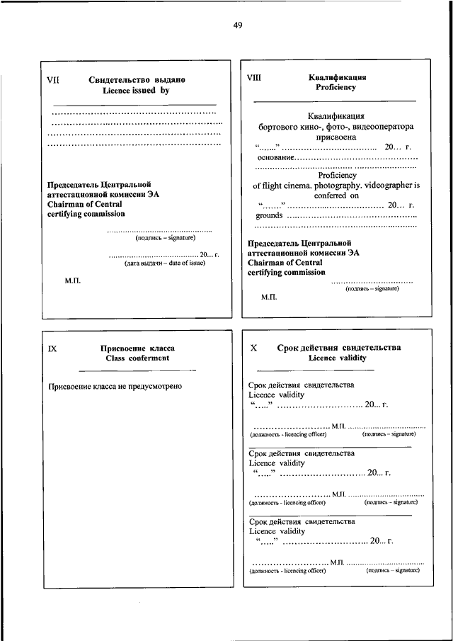 "ОБ УТВЕРЖДЕНИИ ФОРМ СВИДЕТЕЛЬСТВ СПЕЦИАЛИСТОВ АВИАЦИОННОГО ПЕРСОНАЛА ЭКСПЕРИМЕНТАЛЬНОЙ АВИАЦИИ И ПРАВИЛ ИХ ЗАПОЛНЕНИЯ"