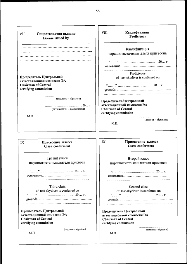 "ОБ УТВЕРЖДЕНИИ ФОРМ СВИДЕТЕЛЬСТВ СПЕЦИАЛИСТОВ АВИАЦИОННОГО ПЕРСОНАЛА ЭКСПЕРИМЕНТАЛЬНОЙ АВИАЦИИ И ПРАВИЛ ИХ ЗАПОЛНЕНИЯ"