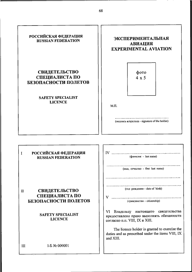 "ОБ УТВЕРЖДЕНИИ ФОРМ СВИДЕТЕЛЬСТВ СПЕЦИАЛИСТОВ АВИАЦИОННОГО ПЕРСОНАЛА ЭКСПЕРИМЕНТАЛЬНОЙ АВИАЦИИ И ПРАВИЛ ИХ ЗАПОЛНЕНИЯ"