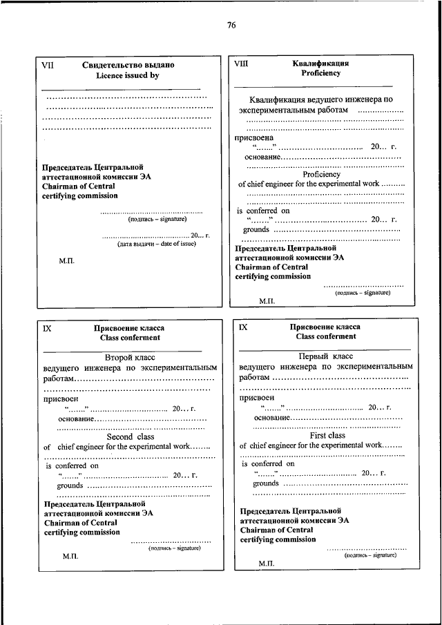"ОБ УТВЕРЖДЕНИИ ФОРМ СВИДЕТЕЛЬСТВ СПЕЦИАЛИСТОВ АВИАЦИОННОГО ПЕРСОНАЛА ЭКСПЕРИМЕНТАЛЬНОЙ АВИАЦИИ И ПРАВИЛ ИХ ЗАПОЛНЕНИЯ"