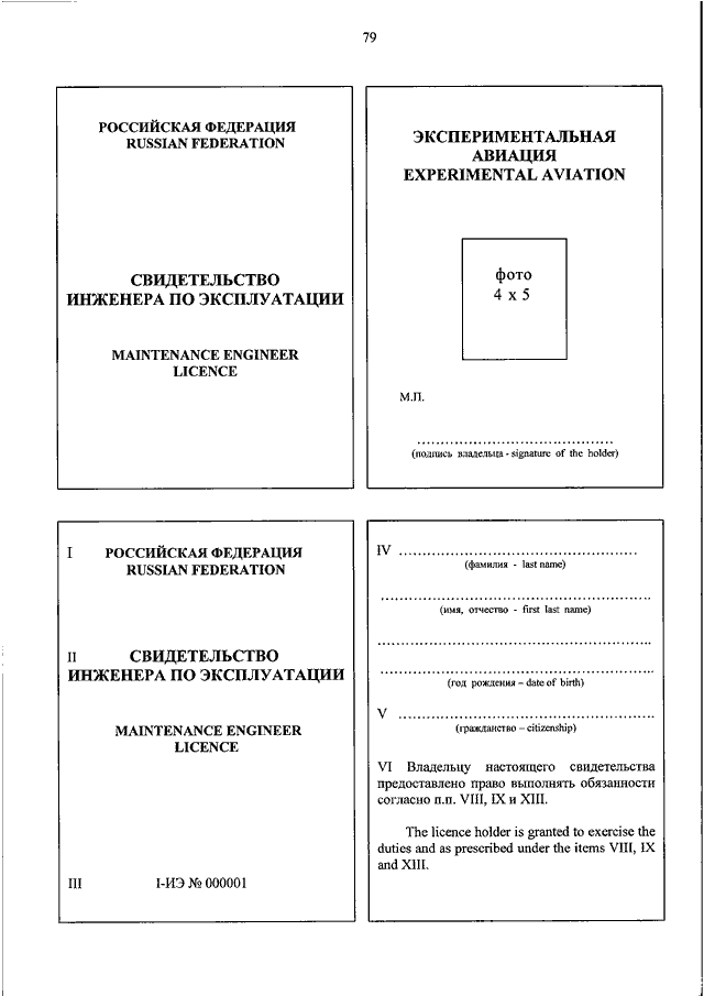 "ОБ УТВЕРЖДЕНИИ ФОРМ СВИДЕТЕЛЬСТВ СПЕЦИАЛИСТОВ АВИАЦИОННОГО ПЕРСОНАЛА ЭКСПЕРИМЕНТАЛЬНОЙ АВИАЦИИ И ПРАВИЛ ИХ ЗАПОЛНЕНИЯ"