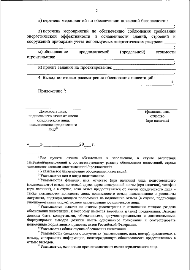 "ОБ УТВЕРЖДЕНИИ ФОРМЫ ОТЗЫВА В ОТНОШЕНИИ ОБОСНОВАНИЯ ИНВЕСТИЦИЙ, ПРЕДСТАВЛЯЕМОГО В ХОДЕ ЕГО ПУБЛИЧНОГО ОБСУЖДЕНИЯ, И ТРЕБОВАНИЙ К ФОРМАТУ ОТЗЫВА И ПОРЯДКУ ЕГО ПРЕДСТАВЛЕНИЯ"