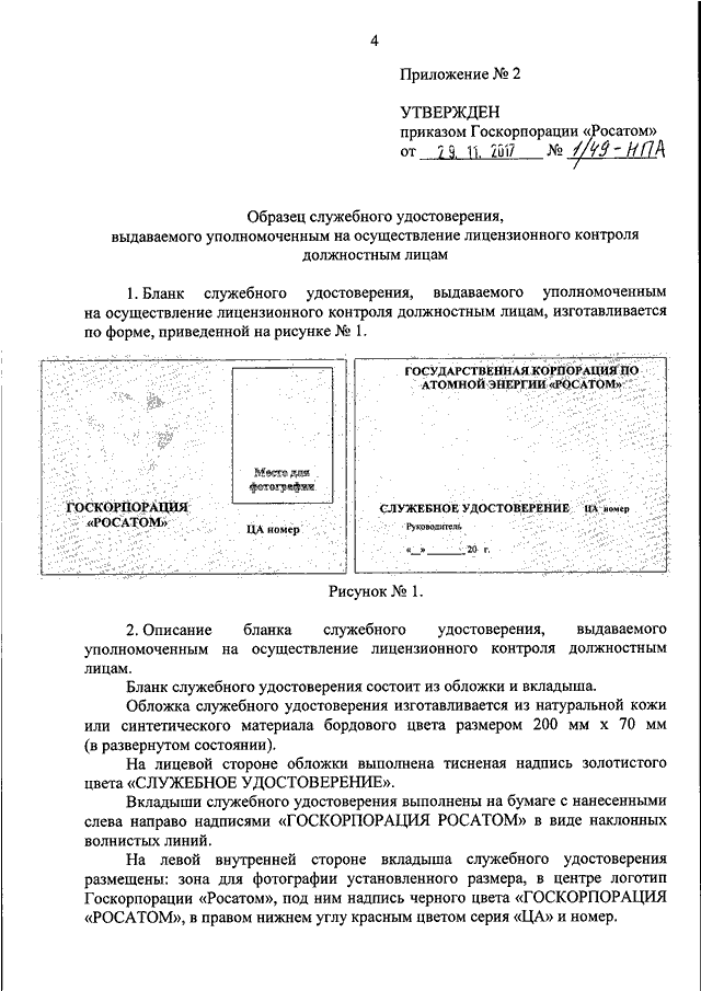 "Росатом" от 29.11.2017 N 1/49-НПА "О СЛУЖЕБНЫХ УДОСТОВЕРЕНИЯХ ЛИЦЕНЗИРУЮЩЕГО ОРГАНА"
