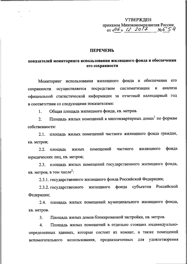 ПРИКАЗ Минэкономразвития РФ от 06.12.2017 N 654