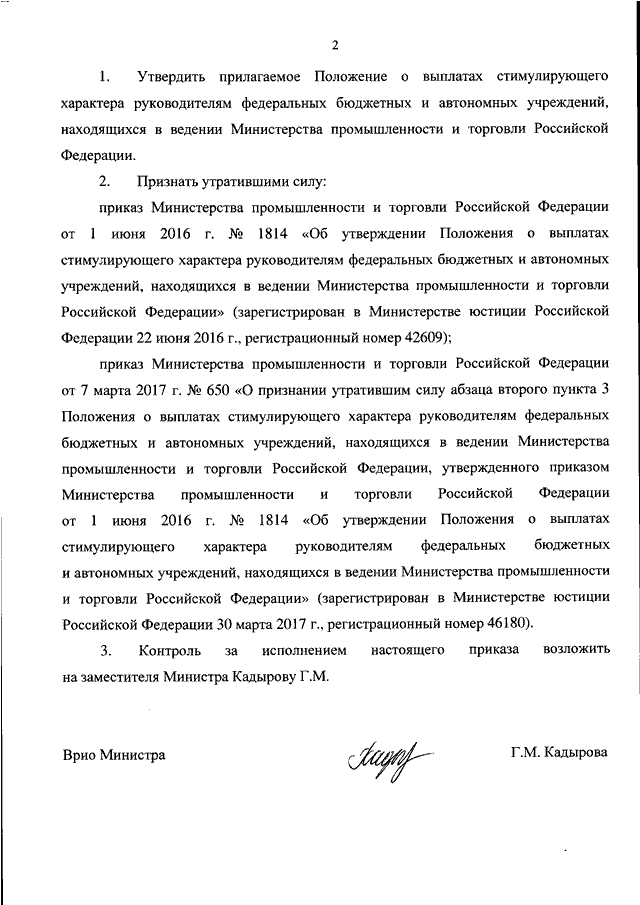 "ОБ УТВЕРЖДЕНИИ ПОЛОЖЕНИЯ О ВЫПЛАТАХ СТИМУЛИРУЮЩЕГО ХАРАКТЕРА РУКОВОДИТЕЛЯМ ФЕДЕРАЛЬНЫХ БЮДЖЕТНЫХ И АВТОНОМНЫХ УЧРЕЖДЕНИЙ, НАХОДЯЩИХСЯ В ВЕДЕНИИ МИНИСТЕРСТВА ПРОМЫШЛЕННОСТИ И ТОРГОВЛИ РОССИЙСКОЙ ФЕДЕРАЦИИ"