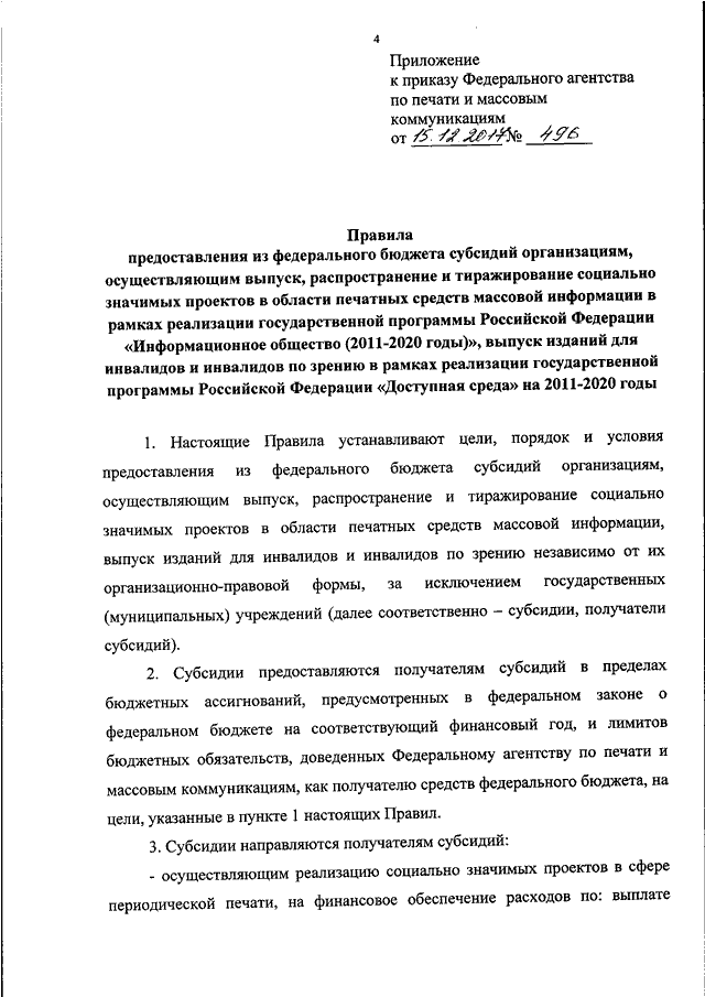 ПРИКАЗ Роспечати от 15.12.2017 N 496