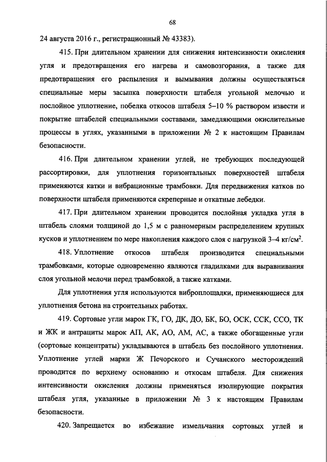 "ОБ УТВЕРЖДЕНИИ ФЕДЕРАЛЬНЫХ НОРМ И ПРАВИЛ В ОБЛАСТИ ПРОМЫШЛЕННОЙ БЕЗОПАСНОСТИ "ПРАВИЛА БЕЗОПАСНОСТИ ПРИ ОБОГАЩЕНИИ И БРИКЕТИРОВАНИИ УГЛЕЙ"