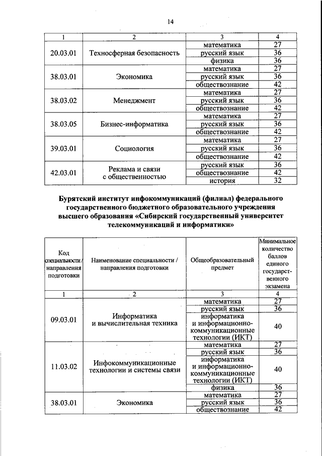 "ОБ УСТАНОВЛЕНИИ МИНИМАЛЬНОГО КОЛИЧЕСТВА БАЛЛОВ ЕДИНОГО ГОСУДАРСТВЕННОГО ЭКЗАМЕНА ПО ОБЩЕОБРАЗОВАТЕЛЬНЫМ ПРЕДМЕТАМ, СООТВЕТСТВУЮЩИМ СПЕЦИАЛЬНОСТИ ИЛИ НАПРАВЛЕНИЯМ ПОДГОТОВКИ, ПО КОТОРЫМ ПРОВОДИТСЯ ПРИЕМ НА ОБУЧЕНИЕ, В ТОМ ЧИСЛЕ ЦЕЛЕВОЙ ПРИЕМ, В ОБРАЗОВАТЕЛЬНЫХ ОРГАНИЗАЦИЯХ, НАХОДЯЩИХСЯ В ВЕДЕНИИ ФЕДЕРАЛЬНОГО АГЕНТСТВА СВЯЗИ, В 2018 ГОДУ"