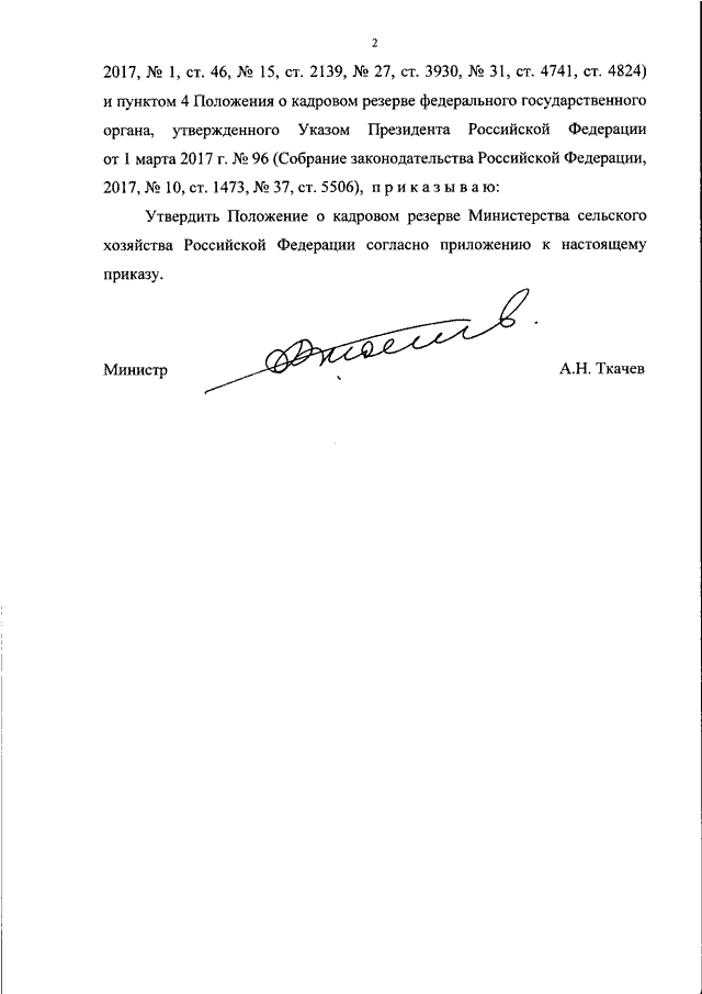 "ОБ УТВЕРЖДЕНИИ ПОЛОЖЕНИЯ О КАДРОВОМ РЕЗЕРВЕ МИНИСТЕРСТВА СЕЛЬСКОГО ХОЗЯЙСТВА РОССИЙСКОЙ ФЕДЕРАЦИИ"