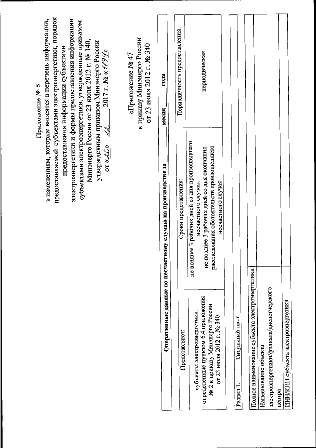 "О ВНЕСЕНИИ ИЗМЕНЕНИЙ В ПЕРЕЧЕНЬ ИНФОРМАЦИИ, ПРЕДОСТАВЛЯЕМОЙ СУБЪЕКТАМИ ЭЛЕКТРОЭНЕРГЕТИКИ, ПОРЯДОК ПРЕДОСТАВЛЕНИЯ ИНФОРМАЦИИ СУБЪЕКТАМИ ЭЛЕКТРОЭНЕРГЕТИКИ И ФОРМЫ ПРЕДОСТАВЛЕНИЯ ИНФОРМАЦИИ СУБЪЕКТАМИ ЭЛЕКТРОЭНЕРГЕТИКИ, УТВЕРЖДЕННЫЕ ПРИКАЗОМ МИНЭНЕРГО РОССИИ ОТ 23 ИЮЛЯ 2012 Г. N 340"