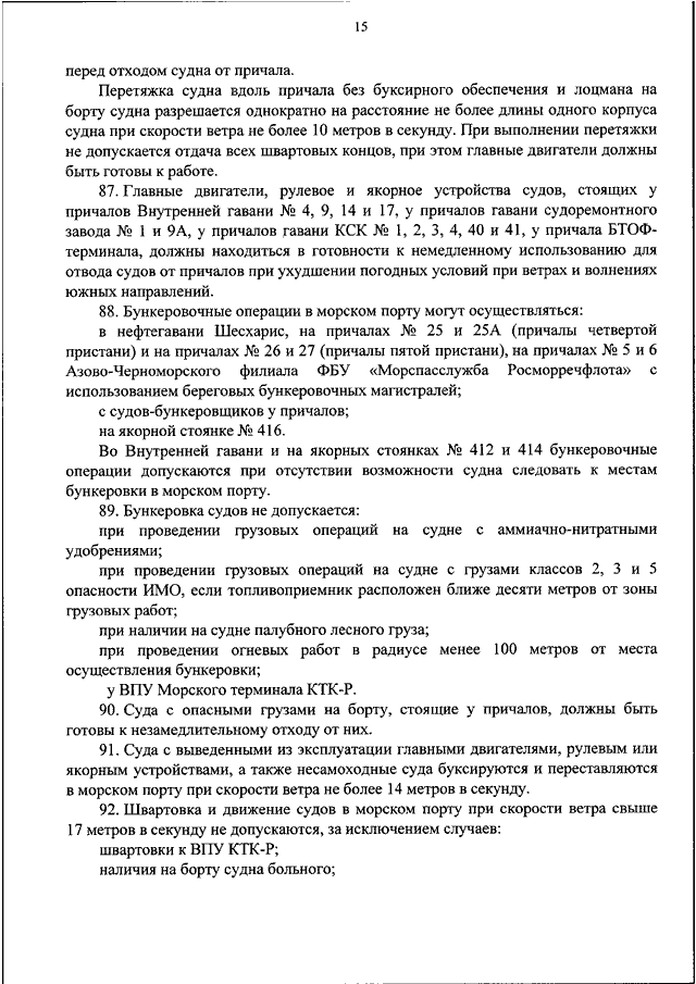 "ОБ УТВЕРЖДЕНИИ ОБЯЗАТЕЛЬНЫХ ПОСТАНОВЛЕНИЙ В МОРСКОМ ПОРТУ НОВОРОССИЙСК"