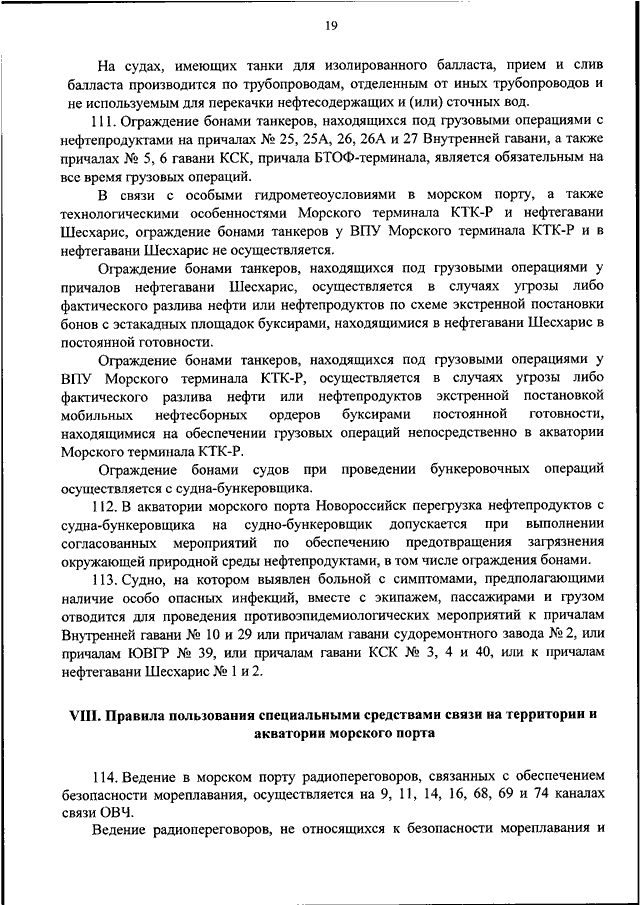 "ОБ УТВЕРЖДЕНИИ ОБЯЗАТЕЛЬНЫХ ПОСТАНОВЛЕНИЙ В МОРСКОМ ПОРТУ НОВОРОССИЙСК"