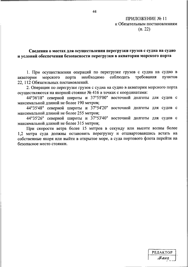 "ОБ УТВЕРЖДЕНИИ ОБЯЗАТЕЛЬНЫХ ПОСТАНОВЛЕНИЙ В МОРСКОМ ПОРТУ НОВОРОССИЙСК"