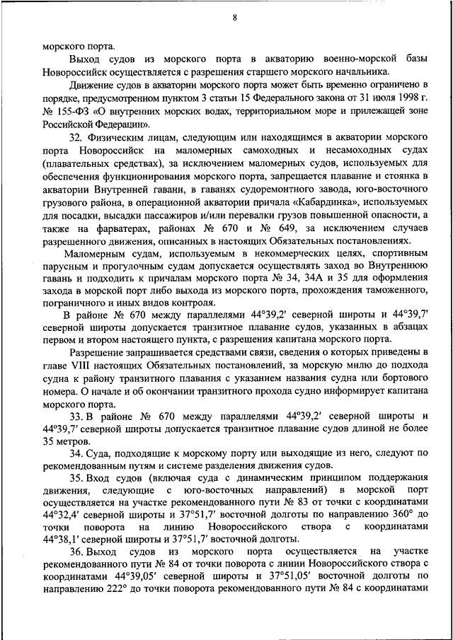 "ОБ УТВЕРЖДЕНИИ ОБЯЗАТЕЛЬНЫХ ПОСТАНОВЛЕНИЙ В МОРСКОМ ПОРТУ НОВОРОССИЙСК"