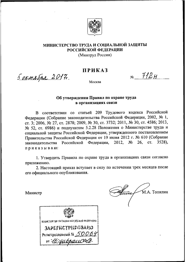ПРИКАЗ Минтруда РФ от 05.10.2017 N 712н