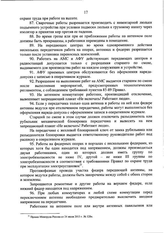 "ОБ УТВЕРЖДЕНИИ ПРАВИЛ ПО ОХРАНЕ ТРУДА В ОРГАНИЗАЦИЯХ СВЯЗИ"