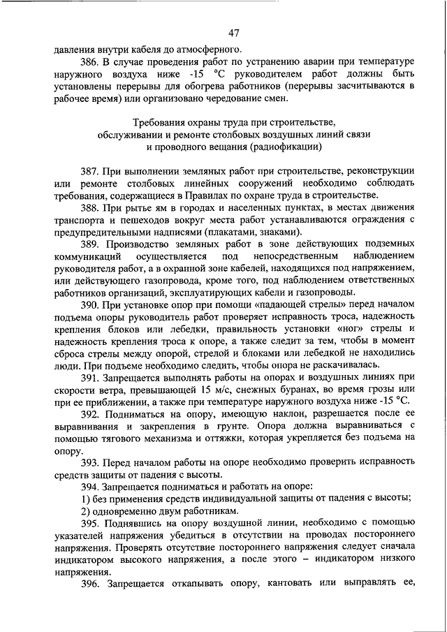 "ОБ УТВЕРЖДЕНИИ ПРАВИЛ ПО ОХРАНЕ ТРУДА В ОРГАНИЗАЦИЯХ СВЯЗИ"
