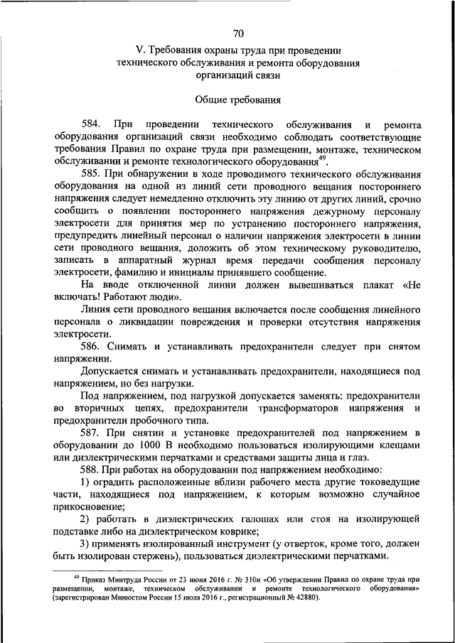 "ОБ УТВЕРЖДЕНИИ ПРАВИЛ ПО ОХРАНЕ ТРУДА В ОРГАНИЗАЦИЯХ СВЯЗИ"