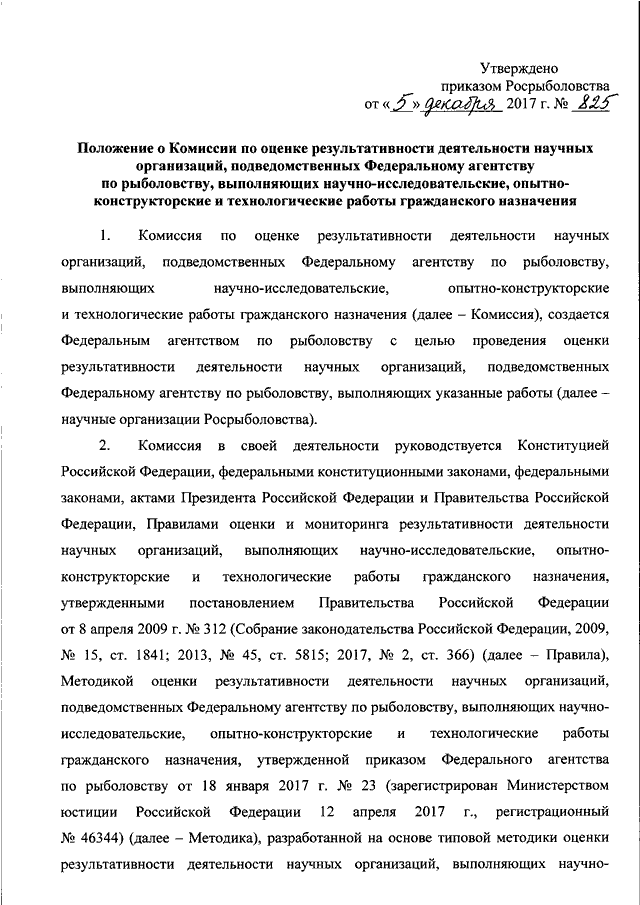 ПРИКАЗ Росрыболовства от 05.12.2017 N 825