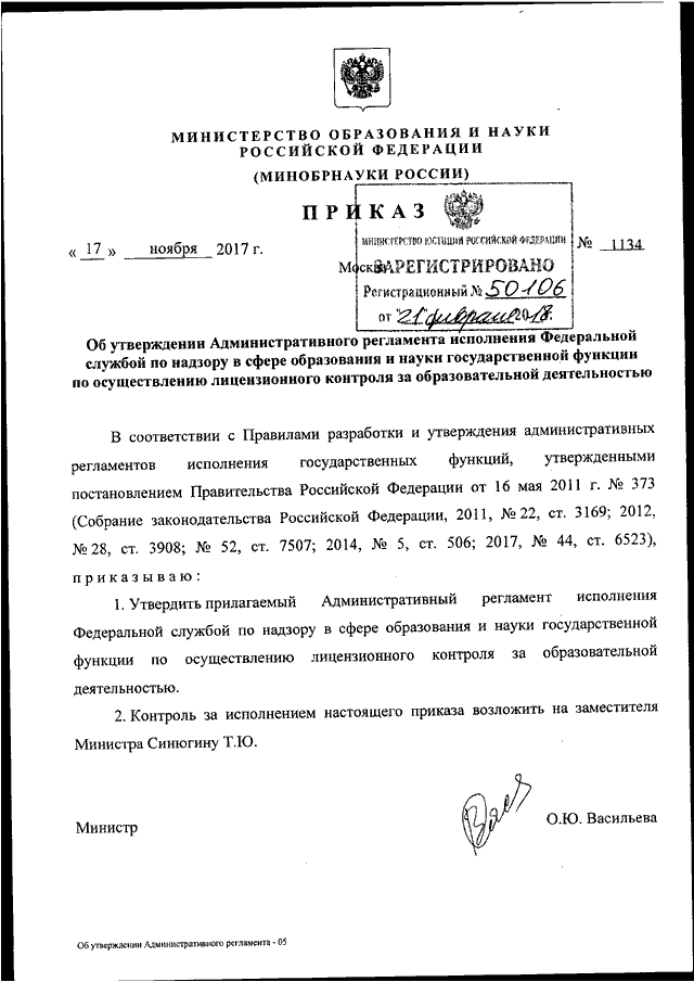 ПРИКАЗ Минобрнауки РФ от 17.11.2017 N 1134