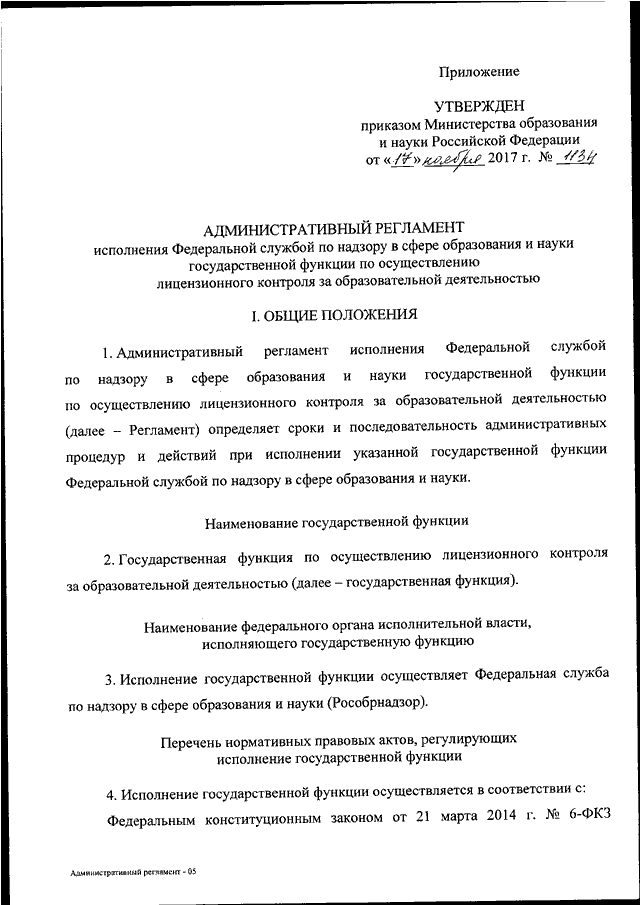ПРИКАЗ Минобрнауки РФ от 17.11.2017 N 1134