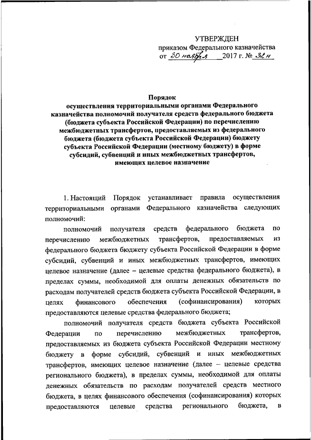 ПРИКАЗ Федерального казначейства от 30.11.2017 N 32н