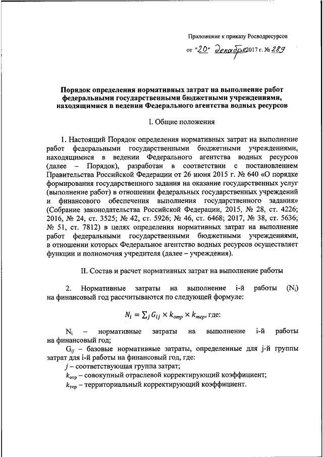 ПРИКАЗ Росводресурсов от 20.12.2017 N 289