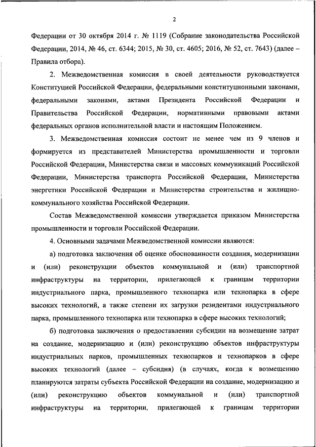 "О МЕЖВЕДОМСТВЕННОЙ КОМИССИИ ПО ОТБОРУ ПРОЕКТОВ ПО СОЗДАНИЮ, МОДЕРНИЗАЦИИ И (ИЛИ) РЕКОНСТРУКЦИИ ОБЪЕКТОВ ИНФРАСТРУКТУРЫ ИНДУСТРИАЛЬНЫХ ПАРКОВ, ПРОМЫШЛЕННЫХ ТЕХНОПАРКОВ И ТЕХНОПАРКОВ В СФЕРЕ ВЫСОКИХ ТЕХНОЛОГИЙ"