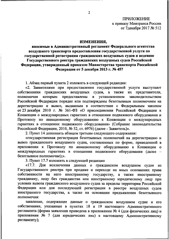 "О ВНЕСЕНИИ ИЗМЕНЕНИЙ В АДМИНИСТРАТИВНЫЙ РЕГЛАМЕНТ ФЕДЕРАЛЬНОГО АГЕНТСТВА ВОЗДУШНОГО ТРАНСПОРТА ПРЕДОСТАВЛЕНИЯ ГОСУДАРСТВЕННОЙ УСЛУГИ ПО ГОСУДАРСТВЕННОЙ РЕГИСТРАЦИИ ГРАЖДАНСКИХ ВОЗДУШНЫХ СУДОВ И ВЕДЕНИЮ ГОСУДАРСТВЕННОГО РЕЕСТРА ГРАЖДАНСКИХ ВОЗДУШНЫХ СУДОВ РОССИЙСКОЙ ФЕДЕРАЦИИ, УТВЕРЖДЕННЫЙ ПРИКАЗОМ МИНИСТЕРСТВА ТРАНСПОРТА РОССИЙСКОЙ ФЕДЕРАЦИИ ОТ 5 ДЕКАБРЯ 2013 Г. N 457"