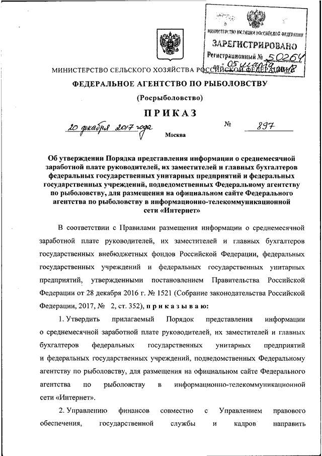 ПРИКАЗ Росрыболовства от 20.12.2017 N 897