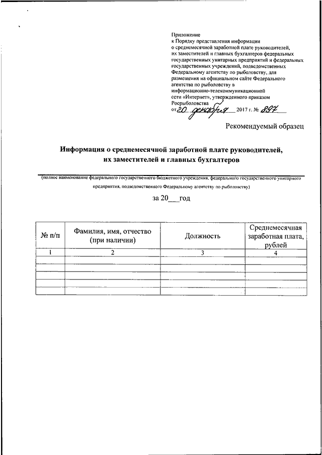 "ОБ УТВЕРЖДЕНИИ ПОРЯДКА ПРЕДСТАВЛЕНИЯ ИНФОРМАЦИИ О СРЕДНЕМЕСЯЧНОЙ ЗАРАБОТНОЙ ПЛАТЕ РУКОВОДИТЕЛЕЙ, ИХ ЗАМЕСТИТЕЛЕЙ И ГЛАВНЫХ БУХГАЛТЕРОВ ФЕДЕРАЛЬНЫХ ГОСУДАРСТВЕННЫХ УНИТАРНЫХ ПРЕДПРИЯТИЙ И ФЕДЕРАЛЬНЫХ ГОСУДАРСТВЕННЫХ УЧРЕЖДЕНИЙ, ПОДВЕДОМСТВЕННЫХ ФЕДЕРАЛЬНОМУ АГЕНТСТВУ ПО РЫБОЛОВСТВУ, ДЛЯ РАЗМЕЩЕНИЯ НА ОФИЦИАЛЬНОМ САЙТЕ ФЕДЕРАЛЬНОГО АГЕНТСТВА ПО РЫБОЛОВСТВУ В ИНФОРМАЦИОННО - ТЕЛЕКОММУНИКАЦИОННОЙ СЕТИ "ИНТЕРНЕТ"