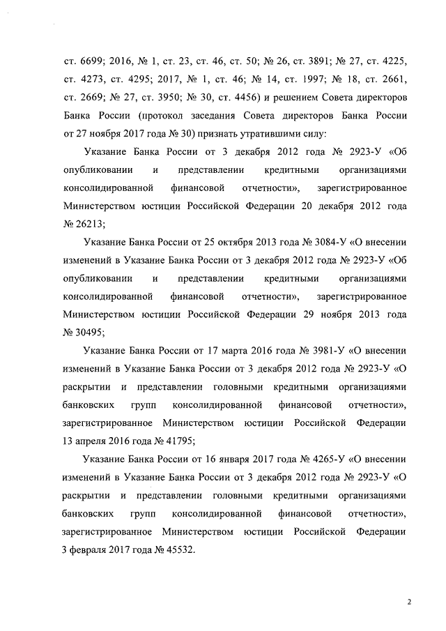 "О ПРИЗНАНИИ УТРАТИВШИМИ СИЛУ ОТДЕЛЬНЫХ НОРМАТИВНЫХ АКТОВ БАНКА РОССИИ ПО ВОПРОСАМ РАСКРЫТИЯ И ПРЕДСТАВЛЕНИЯ ГОЛОВНЫМИ КРЕДИТНЫМИ ОРГАНИЗАЦИЯМИ БАНКОВСКИХ ГРУПП КОНСОЛИДИРОВАННОЙ ФИНАНСОВОЙ ОТЧЕТНОСТИ"