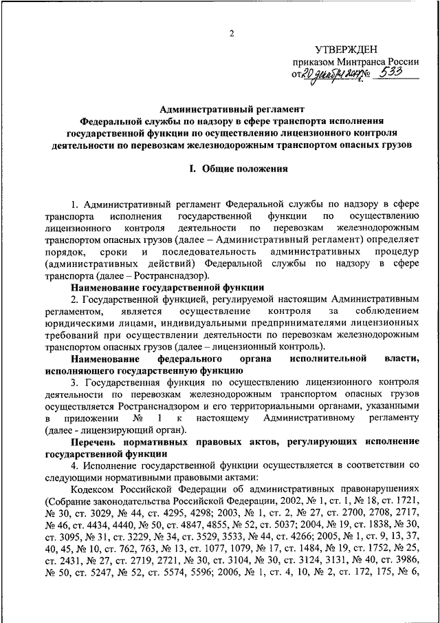 "ОБ УТВЕРЖДЕНИИ АДМИНИСТРАТИВНОГО РЕГЛАМЕНТА ФЕДЕРАЛЬНОЙ СЛУЖБЫ ПО НАДЗОРУ В СФЕРЕ ТРАНСПОРТА ИСПОЛНЕНИЯ ГОСУДАРСТВЕННОЙ ФУНКЦИИ ПО ОСУЩЕСТВЛЕНИЮ ЛИЦЕНЗИОННОГО КОНТРОЛЯ ДЕЯТЕЛЬНОСТИ ПО ПЕРЕВОЗКАМ ЖЕЛЕЗНОДОРОЖНЫМ ТРАНСПОРТОМ ОПАСНЫХ ГРУЗОВ"