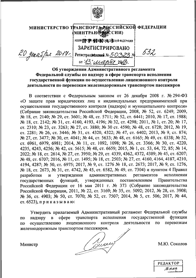 ПРИКАЗ Минтранса РФ от 20.12.2017 N 532