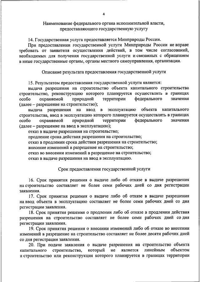 "ОБ УТВЕРЖДЕНИИ АДМИНИСТРАТИВНОГО РЕГЛАМЕНТА ПРЕДОСТАВЛЕНИИ МИНИСТЕРСТВОМ ПРИРОДНЫХ РЕСУРСОВ И ЭКОЛОГИИ РОССИЙСКОЙ ФЕДЕРАЦИИ ГОСУДАРСТВЕННОЙ УСЛУГИ ПО ВЫДАЧЕ РАЗРЕШЕНИЙ НА СТРОИТЕЛЬСТВО И РЕКОНСТРУКЦИЮ ОБЪЕКТОВ КАПИТАЛЬНОГО СТРОИТЕЛЬСТВА, ПЛАНИРУЕМЫХ В ГРАНИЦАХ ОСОБО ОХРАНЯЕМЫХ ПРИРОДНЫХ ТЕРРИТОРИЙ ФЕДЕРАЛЬНОГО ЗНАЧЕНИЯ, А ТАКЖЕ РАЗРЕШЕНИЯ НА ВВОД В ЭКСПЛУАТАЦИЮ УКАЗАННЫХ ОБЪЕКТОВ"