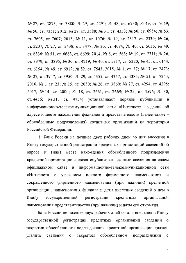 "О ПОРЯДКЕ ПУБЛИКАЦИИ В ИНФОРМАЦИОННО - ТЕЛЕКОММУНИКАЦИОННОЙ СЕТИ "ИНТЕРНЕТ" СВЕДЕНИЙ ОБ АДРЕСЕ И МЕСТЕ НАХОЖДЕНИЯ ФИЛИАЛОВ И ПРЕДСТАВИТЕЛЬСТВ КРЕДИТНЫХ ОРГАНИЗАЦИЙ НА ТЕРРИТОРИИ РОССИЙСКОЙ ФЕДЕРАЦИИ"