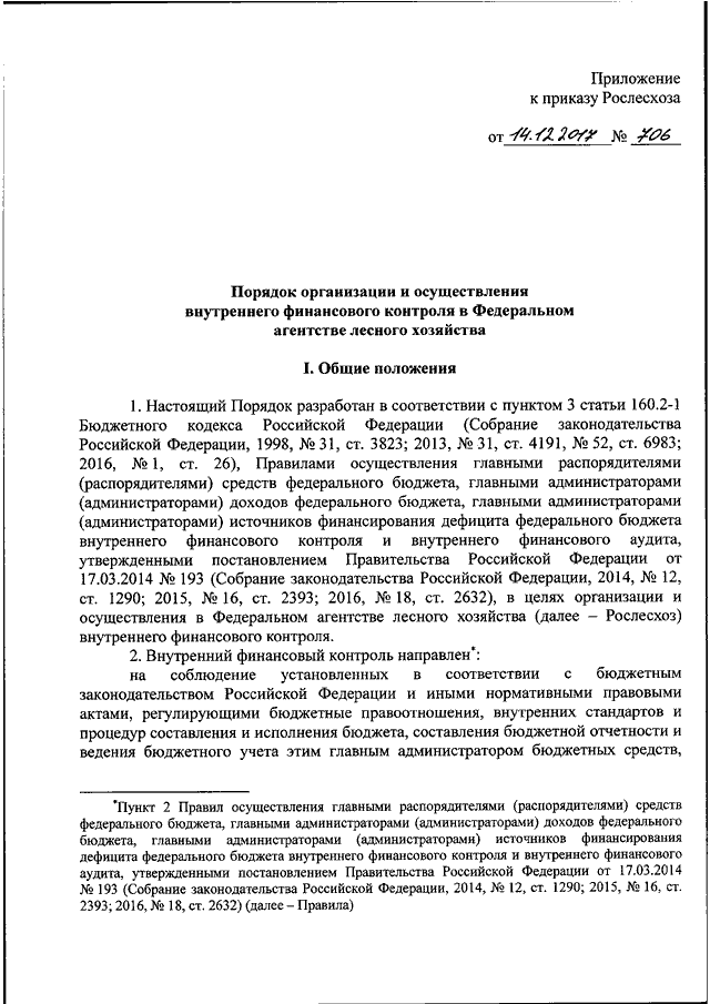 ПРИКАЗ Рослесхоза от 14.12.2017 N 706