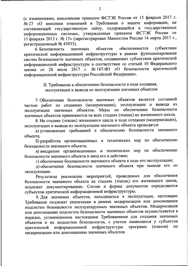 "ОБ УТВЕРЖДЕНИИ ТРЕБОВАНИЙ ПО ОБЕСПЕЧЕНИЮ БЕЗОПАСНОСТИ ЗНАЧИМЫХ ОБЪЕКТОВ КРИТИЧЕСКОЙ ИНФОРМАЦИОННОЙ ИНФРАСТРУКТУРЫ РОССИЙСКОЙ ФЕДЕРАЦИИ"