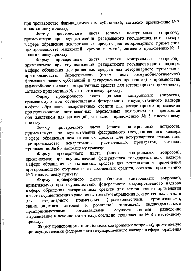 "ОБ УТВЕРЖДЕНИИ ФОРМ ПРОВЕРОЧНЫХ ЛИСТОВ (СПИСКОВ КОНТРОЛЬНЫХ ВОПРОСОВ), ИСПОЛЬЗУЕМЫХ ДОЛЖНОСТНЫМИ ЛИЦАМИ ТЕРРИТОРИАЛЬНЫХ ОРГАНОВ ФЕДЕРАЛЬНОЙ СЛУЖБЫ ПО ВЕТЕРИНАРНОМУ И ФИТОСАНИТАРНОМУ НАДЗОРУ ПРИ ПРОВЕДЕНИИ ПЛАНОВЫХ ПРОВЕРОК В РАМКАХ ОСУЩЕСТВЛЕНИЯ ФЕДЕРАЛЬНОГО ГОСУДАРСТВЕННОГО НАДЗОРА В СФЕРЕ ОБРАЩЕНИЯ ЛЕКАРСТВЕННЫХ СРЕДСТВ ДЛЯ ВЕТЕРИНАРНОГО ПРИМЕНЕНИЯ"