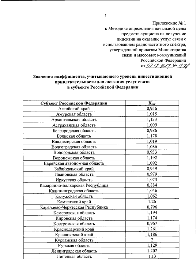 "ОБ УТВЕРЖДЕНИИ МЕТОДИКИ ОПРЕДЕЛЕНИЯ НАЧАЛЬНОЙ ЦЕНЫ ПРЕДМЕТА АУКЦИОНА НА ПОЛУЧЕНИЕ ЛИЦЕНЗИИ НА ОКАЗАНИЕ УСЛУГ СВЯЗИ С ИСПОЛЬЗОВАНИЕМ РАДИОЧАСТОТНОГО СПЕКТРА"