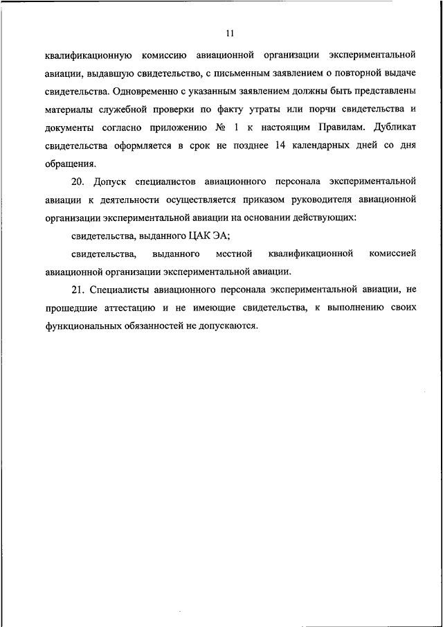 "ОБ УТВЕРЖДЕНИИ ФЕДЕРАЛЬНЫХ АВИАЦИОННЫХ ПРАВИЛ ПРОВЕДЕНИЯ ОБЯЗАТЕЛЬНОЙ АТТЕСТАЦИИ АВИАЦИОННОГО ПЕРСОНАЛА ЭКСПЕРИМЕНТАЛЬНОЙ АВИАЦИИ, ВЫДАЧИ СВИДЕТЕЛЬСТВ СПЕЦИАЛИСТОВ АВИАЦИОННОГО ПЕРСОНАЛА ЭКСПЕРИМЕНТАЛЬНОЙ АВИАЦИИ И ДОПУСКА СПЕЦИАЛИСТОВ АВИАЦИОННОГО ПЕРСОНАЛА ЭКСПЕРИМЕНТАЛЬНОЙ АВИАЦИИ К ДЕЯТЕЛЬНОСТИ"