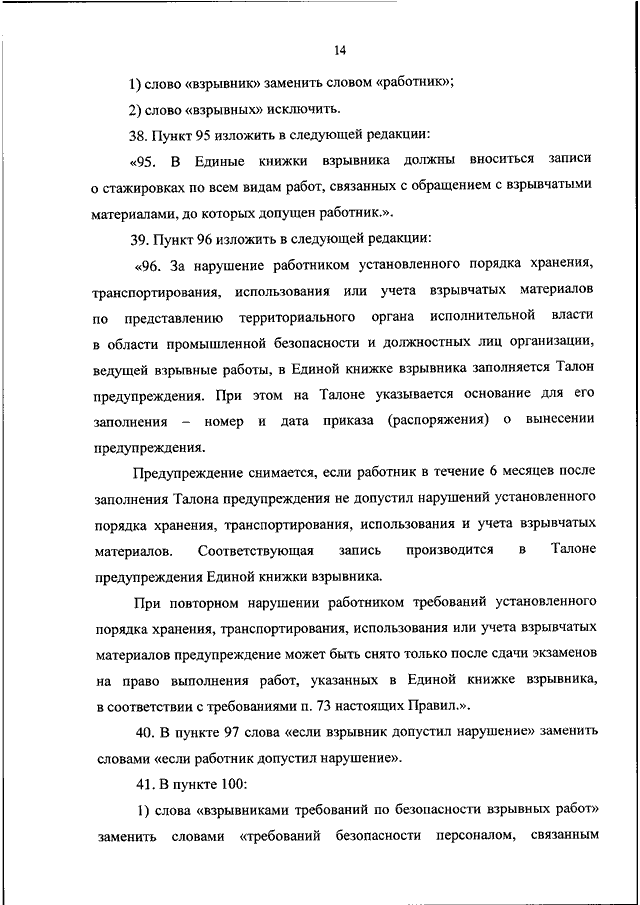 "О ВНЕСЕНИИ ИЗМЕНЕНИЙ В ФЕДЕРАЛЬНЫЕ НОРМЫ И ПРАВИЛА В ОБЛАСТИ ПРОМЫШЛЕННОЙ БЕЗОПАСНОСТИ "ПРАВИЛА БЕЗОПАСНОСТИ ПРИ ВЗРЫВНЫХ РАБОТАХ", УТВЕРЖДЕННЫЕ ПРИКАЗОМ ФЕДЕРАЛЬНОЙ СЛУЖБЫ ПО ЭКОЛОГИЧЕСКОМУ, ТЕХНОЛОГИЧЕСКОМУ И АТОМНОМУ НАДЗОРУ ОТ 16 ДЕКАБРЯ 2013 Г. N 605"