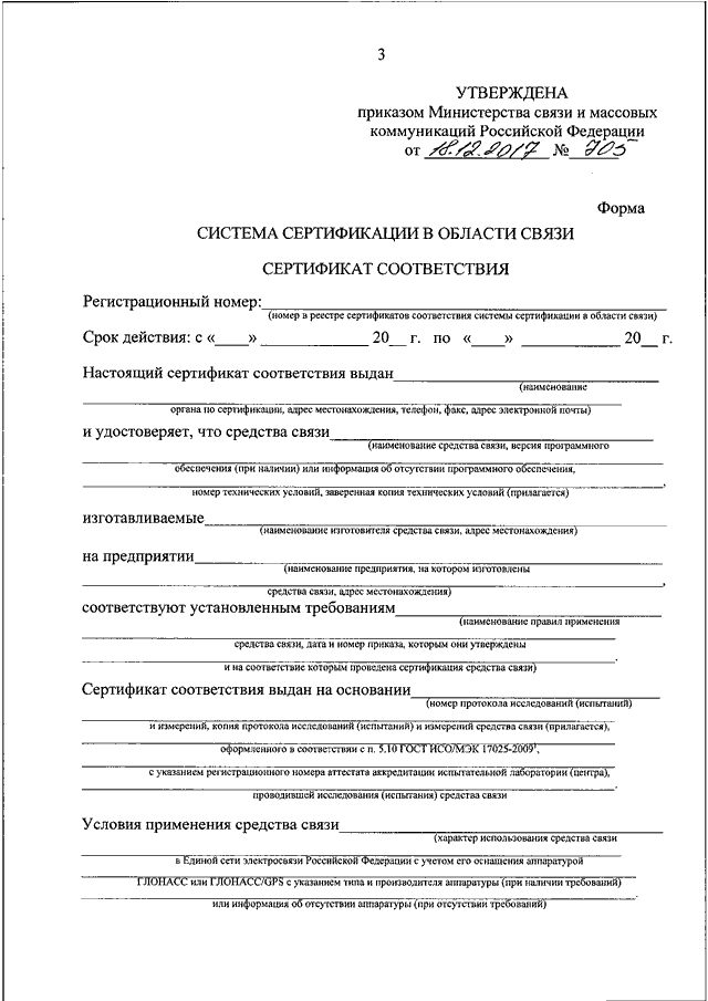 ПРИКАЗ Минкомсвязи РФ от 18.12.2017 N 705