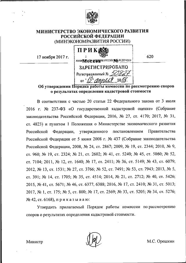 ПРИКАЗ Минэкономразвития РФ от 17.11.2017 N 620