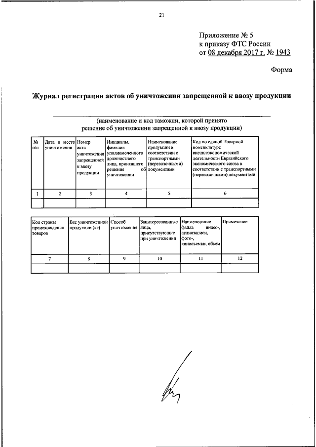 ПРИКАЗ ФТС РФ от 08.12.2017 N 1943