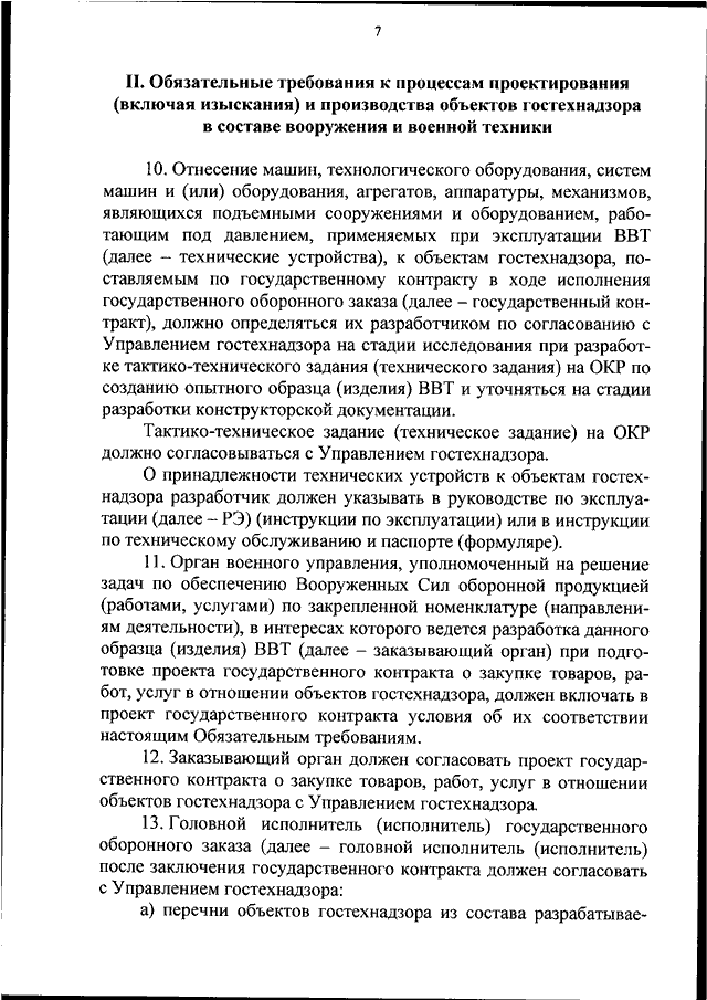 "ОБ УТВЕРЖДЕНИИ ОБЯЗАТЕЛЬНЫХ ТРЕБОВАНИЙ В ОБЛАСТИ ТЕХНИЧЕСКОГО РЕГУЛИРОВАНИЯ К ОБОРОННОЙ ПРОДУКЦИИ (РАБОТАМ, УСЛУГАМ), ЯВЛЯЮЩЕЙСЯ ПОДЪЕМНЫМИ СООРУЖЕНИЯМИ И ОБОРУДОВАНИЕМ, РАБОТАЮЩИМ ПОД ДАВЛЕНИЕМ, В СОСТАВЕ ВООРУЖЕНИЯ И ВОЕННОЙ ТЕХНИКИ, ПОСТАВЛЯЕМОЙ ДЛЯ ВООРУЖЕННЫХ СИЛ РОССИЙСКОЙ ФЕДЕРАЦИИ ПО ГОСУДАРСТВЕННОМУ ОБОРОННОМУ ЗАКАЗУ, ПРОЦЕССАМ ПРОЕКТИРОВАНИЯ (ВКЛЮЧАЯ ИЗЫСКАНИЯ), ПРОИЗВОДСТВА, СТРОИТЕЛЬСТВА, МОНТАЖА, НАЛАДКИ, ЭКСПЛУАТАЦИИ, ХРАНЕНИЯ УКАЗАННОЙ ПРОДУКЦИИ"