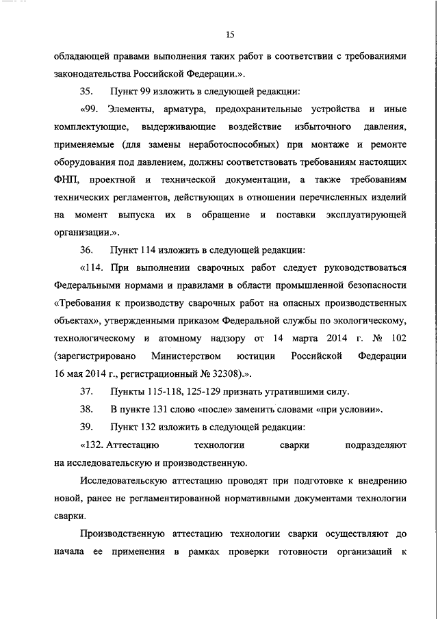 "О ВНЕСЕНИИ ИЗМЕНЕНИЙ В ФЕДЕРАЛЬНЫЕ НОРМЫ И ПРАВИЛА В ОБЛАСТИ ПРОМЫШЛЕННОЙ БЕЗОПАСНОСТИ "ПРАВИЛА БЕЗОПАСНОСТИ ОПАСНЫХ ПРОИЗВОДСТВЕННЫХ ОБЪЕКТОВ, НА КОТОРЫХ ИСПОЛЬЗУЕТСЯ ОБОРУДОВАНИЕ, РАБОТАЮЩЕЕ ПОД ИЗБЫТОЧНЫМ ДАВЛЕНИЕМ", УТВЕРЖДЕННЫЕ ПРИКАЗОМ ФЕДЕРАЛЬНОЙ СЛУЖБЫ ПО ЭКОЛОГИЧЕСКОМУ, ТЕХНОЛОГИЧЕСКОМУ И АТОМНОМУ НАДЗОРУ ОТ 25 МАРТА 2014 Г. N 116"
